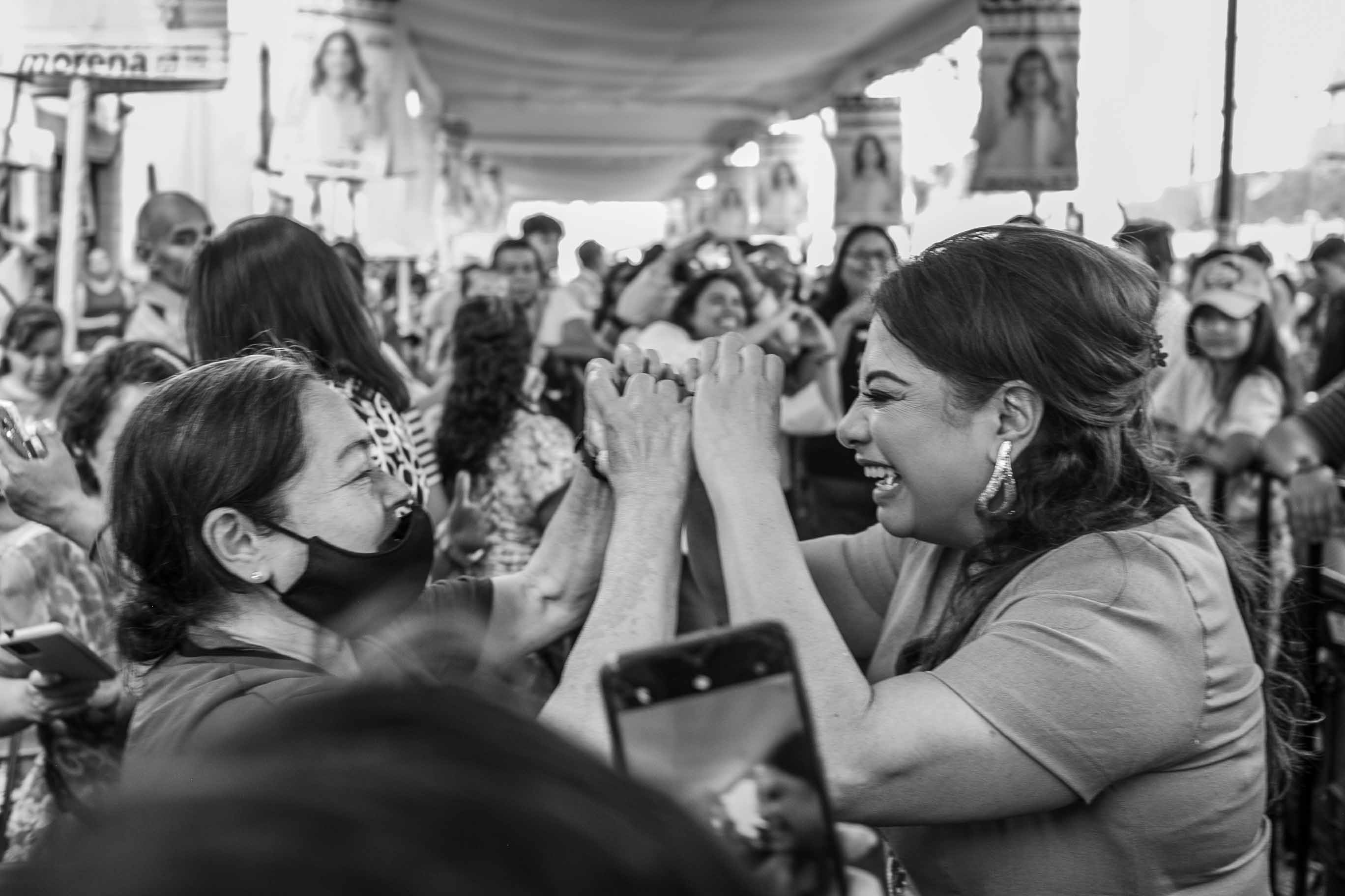 Durante la campaña, uno de los aspectos más importantes de lograr con tu narrativa como candidata, es conectar con las personas. Emocionar a las personas con tu mensaje, con tu historia y tus propuestas de transformación. Construir este vínculo con el electorado se hace a través de un discurso que hile tu historia personal, con la historia de nosotros (el colectivo, el grupo presente que está escuchando el mensaje) y la historia del futuro que juntas vamos a co-crear. Esta foto es de la campaña de la candidata a Jefa de Gobierno de la Ciudad de México, Clara Brugada, en Tepito, 2024.